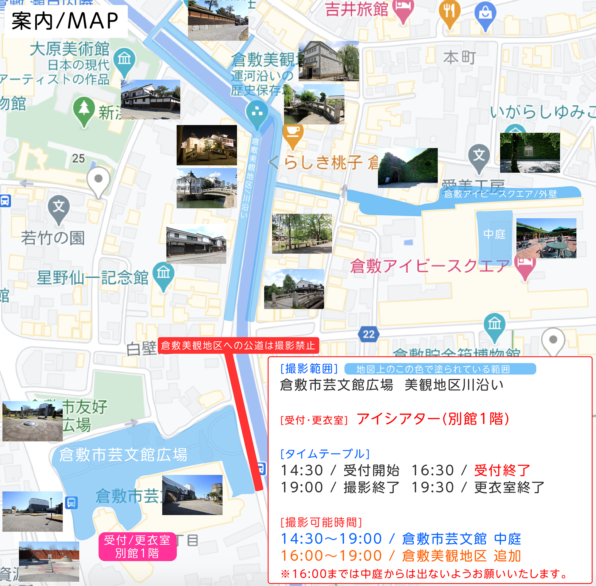 (倉敷市芸文館広場のみ撮影利用可能) (美観地区・アイビースクエアは持込禁止)